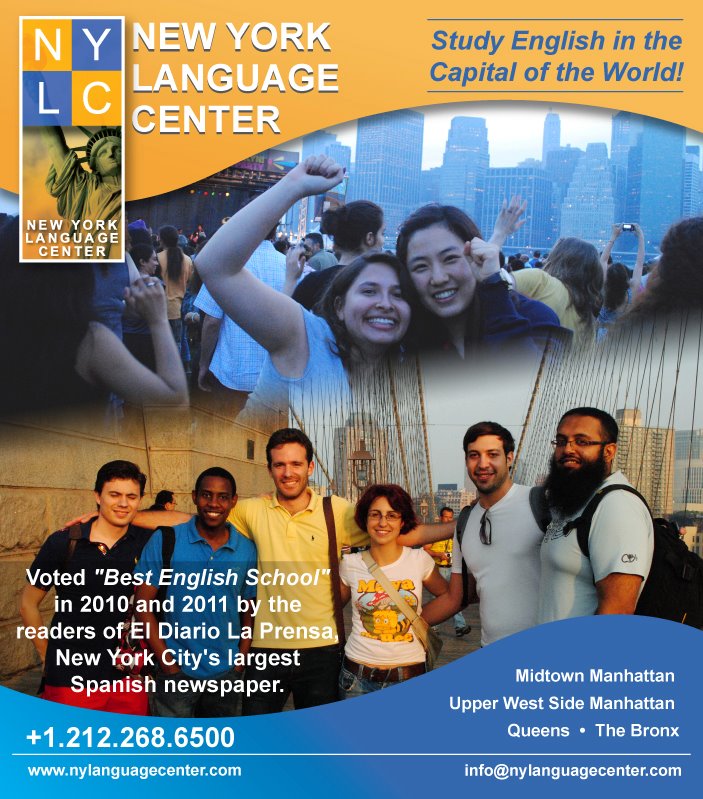 With four branches in one of the most dynamic cities in the world, NYLC offers unparalleled English language instruction to students of all levels. Founded in 1985, NYLC has established itself as one of the largest and most respected English language schools in the New York area. Each year, we help thousands of students from over 75 countries not only learn English, but live English. Whether you call New York your home or will be visiting New York from abroad, you will find that our economical and convenient courses make NYLC the ideal choice for your language education. Additionally, the staff at NYLC works to ensure that your student experience in New York is enjoyable, valuable, and unforgettable. New York Language Center was chosen as the "Best English School in New York" according to the readers of El Diario, two years in a row in their "Best of New York" issue, 2010 and 2011. We can offer your students short term ESL programs for 1 to 6 weeks, and long term programs of up to one year. We are authorized to enroll non-immigrant students (I-20/F1 visa) and we will help you with all arrangements for your students including housing reservations. Those coming to the United States as tourists may join our Semi-Intensive program of English of 15 hours per week. If you have groups we will be happy to work out a package for you including English classes, accommodation, meals, and activities.