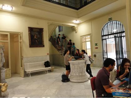 • Enjoying the best of both worlds, old and new, the students will be able to take advantage of the many amenities, such as a fully equipped computer lab with free Internet and wireless connection throughout the building, spacious sporting areas and communal rooms where to carry out their research, relax or socialize, all within the unique environment of a historical building. Furthermore, the archeries around the courtyard, and the yard itself constitute a remarkable sample of traditional religious architecture, which, in turn, was often adapted in civil constructions in Spain, where the internal patio and the corridors around it that link it to the building provide a constant source of fresh breeze and a sheltered area where to enjoy the best of the weather.
